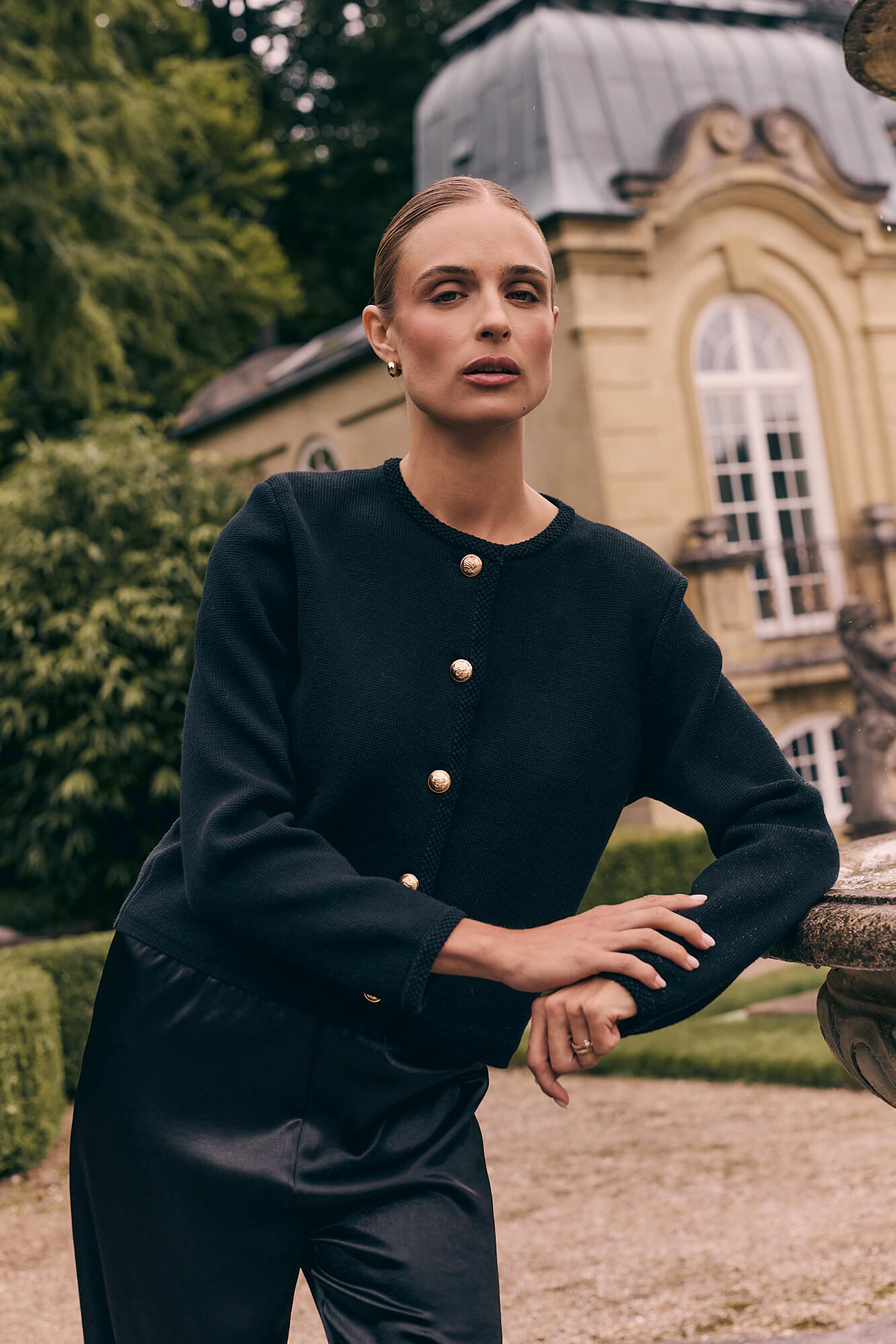 Loano Trenchcoat is a modern interpretation of a timeless classic, designed with a detachable cape that adds movement and architectural elegance to the silhouette. The cape is fastened with discreet buttons hidden under the collar and can be removed to reveal a clean, classic trench coat — offering two distinct looks in one refined design. The trench features a distinctive neck closure that can be worn open or fastened for a more sculptural expression, perfect for styling across seasons.